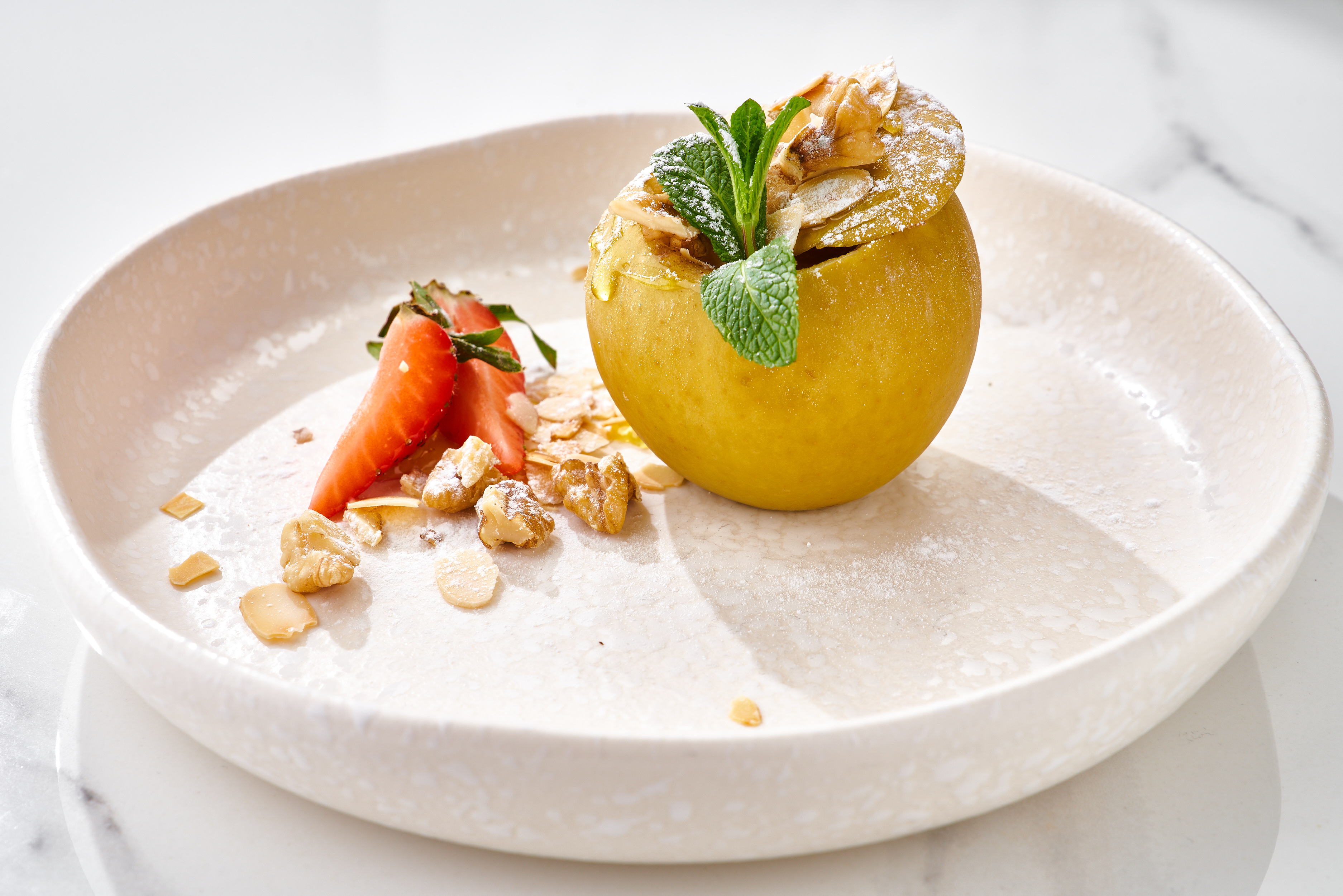 яблоко, корица, мед, орех грецкий, лепестки миндаля