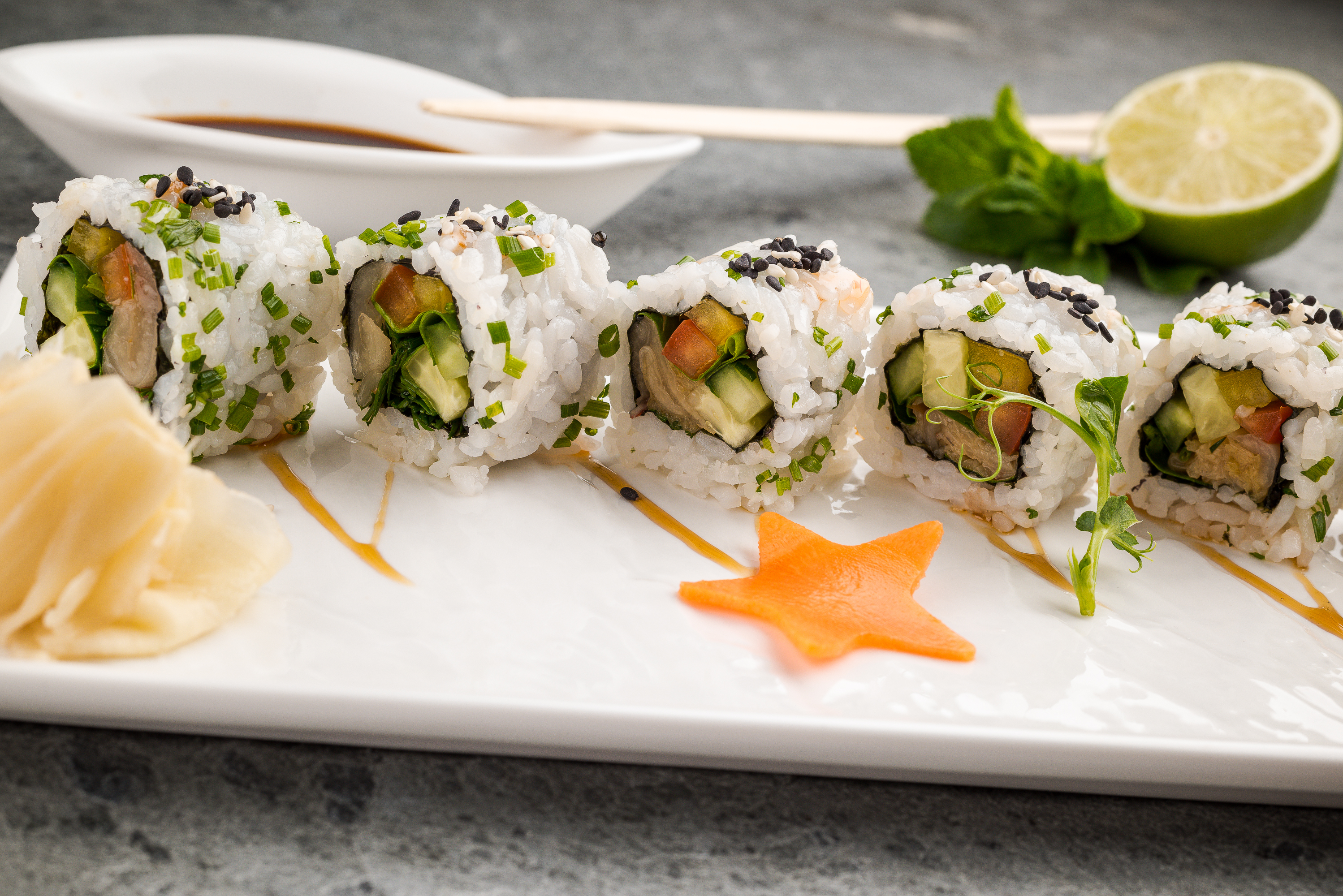 рис японский, нори,огурцы, айсберг, перец болгарский