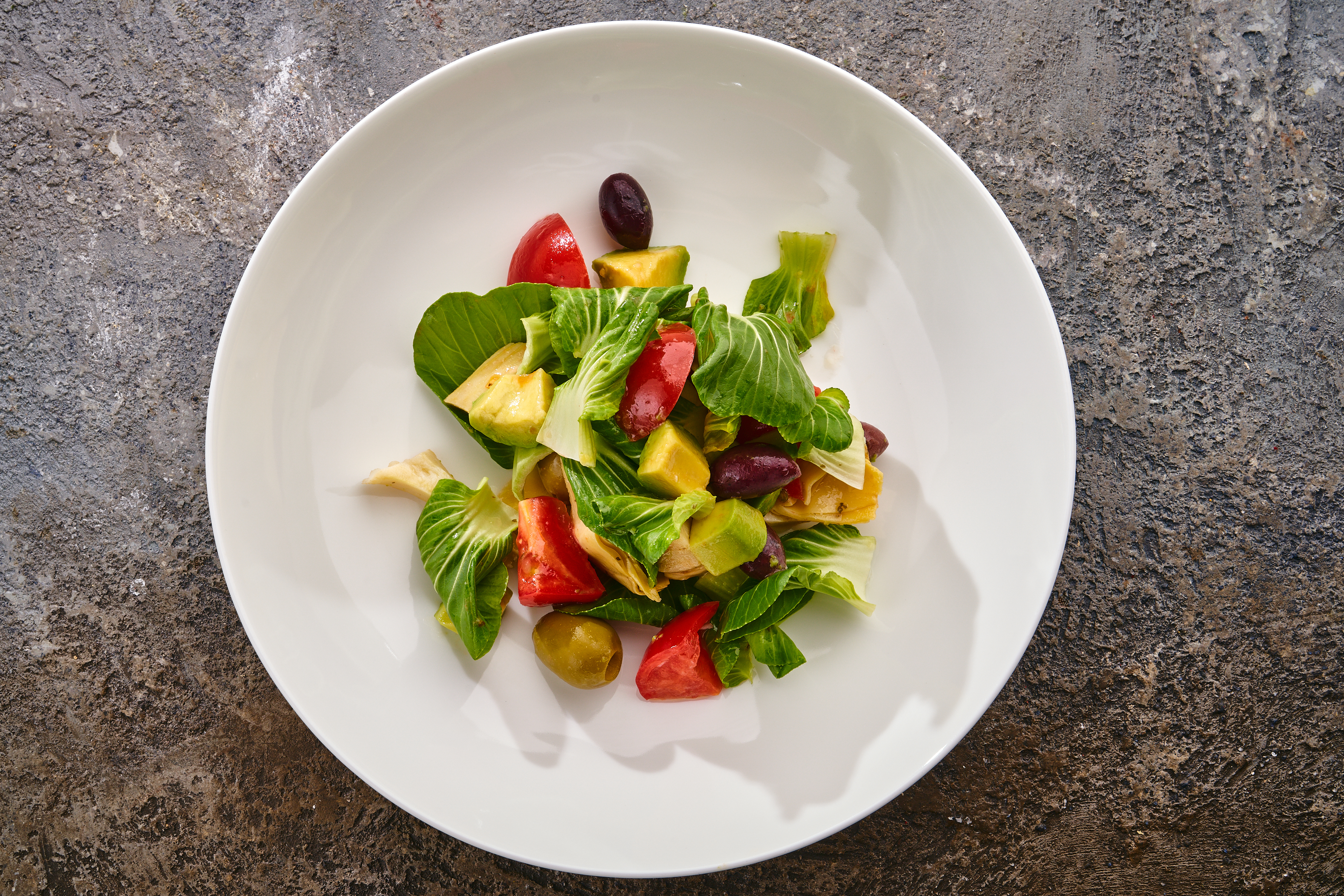 СОСТАВ: артишоки в масле, авокадо, томаты, маслины, масло оливковое, масло петрушки, сок лимона
