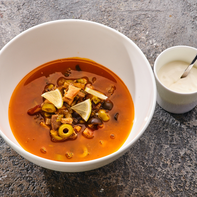 Стейк из говяжьей печени с печеными яблоками и клюквой 1/200