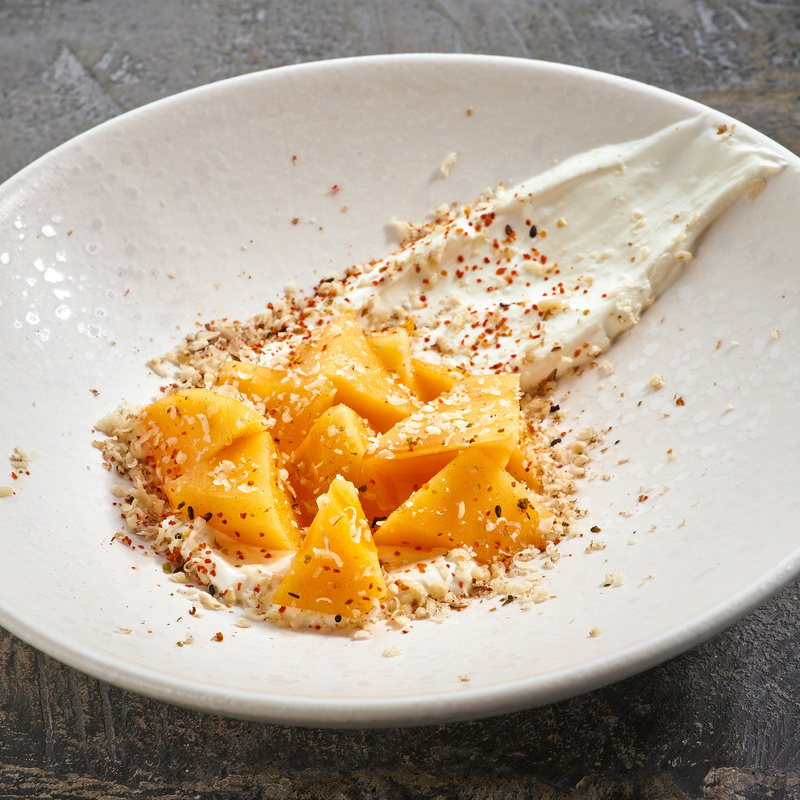Cалат с хурмой и муссом из козьего сыра 1/160