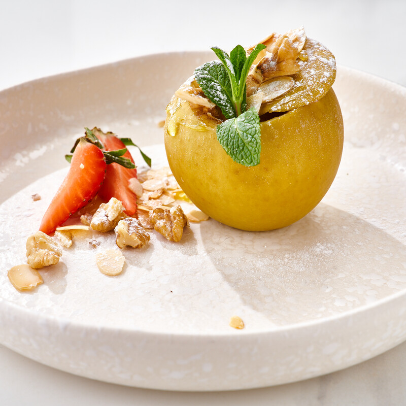 Яблоко печеное с медом, корицей и орехами