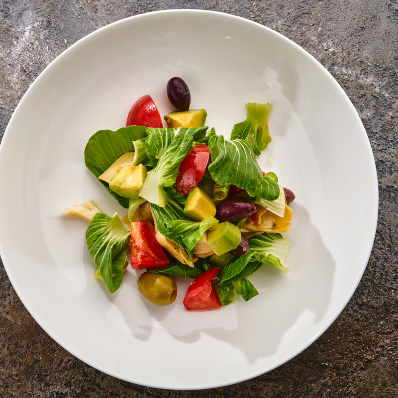 СОСТАВ: артишоки в масле, авокадо, томаты, маслины, масло оливковое, масло петрушки, сок лимона